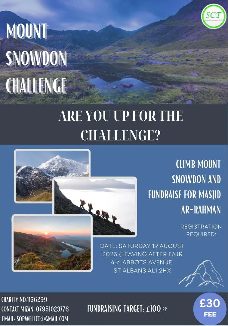 Last year members of the community supported us by raising funds. Their hardwork was turned into donations for treking across Mount Snowonia. A big thank you to all who donated - may Allah reward you.